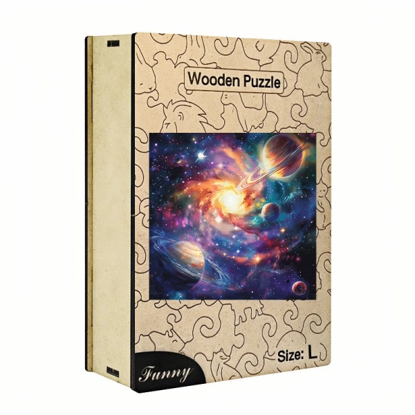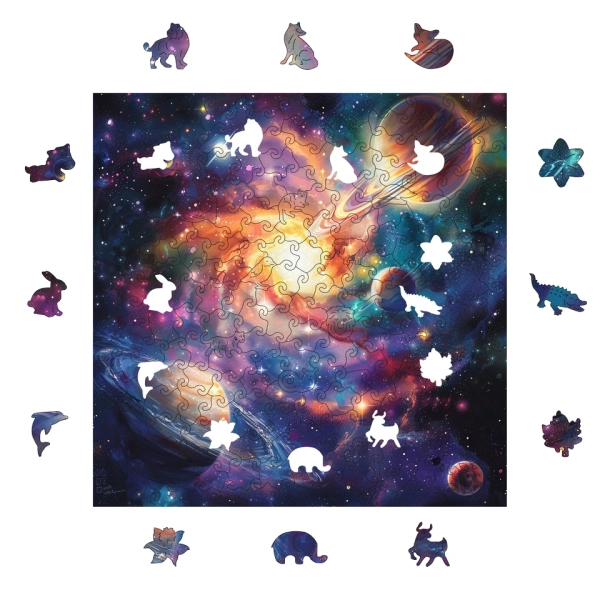 פאזל עץ בחיתוך לייזר, החלקים בצורות מיוחדות שחלקם הם צורות של חיות, דמויות וכו'.