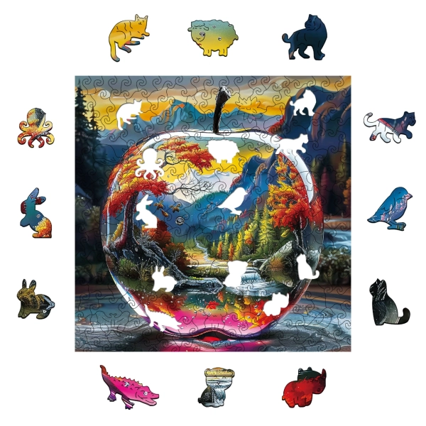 פאזל עץ בחיתוך לייזר, החלקים בצורות מיוחדות שחלקם הם צורות של חיות, דמויות וכו'.