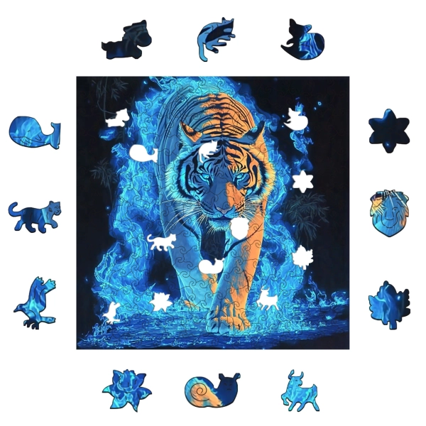 פאזל עץ בחיתוך לייזר, החלקים בצורות מיוחדות שחלקם הם צורות של חיות, דמויות וכו'.