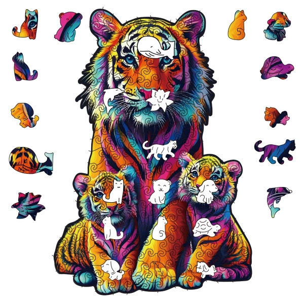 פאזל עץ בחיתוך לייזר, החלקים בצורות מיוחדות שחלקם הם צורות של חיות, דמויות וכו'.