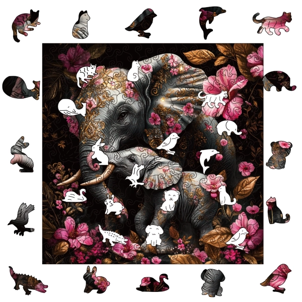 פאזל עץ - פילים.