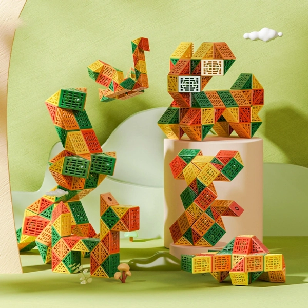 קוביית נחש באורך של 72 חלקים, ניתן לבנות איתה אין סוף צורות.