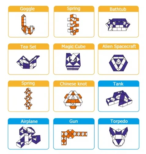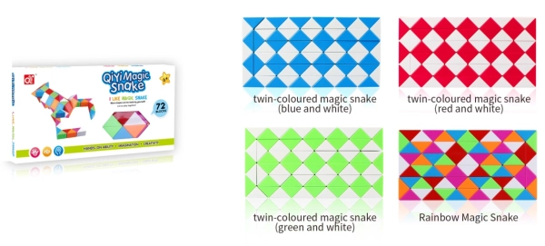 קוביית נחש באורך של 72 חלקים, ניתן לבנות איתה אין סוף של צורות.